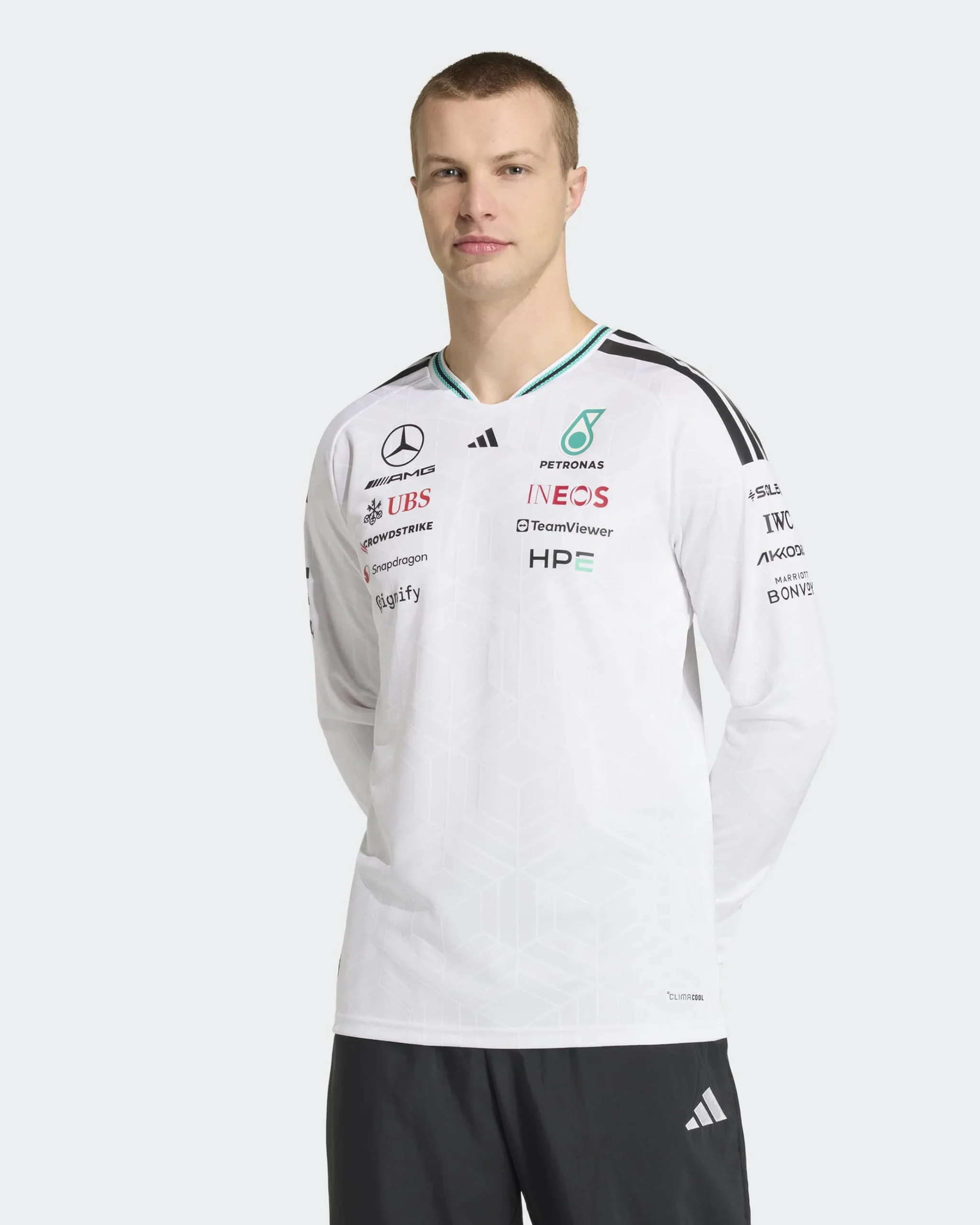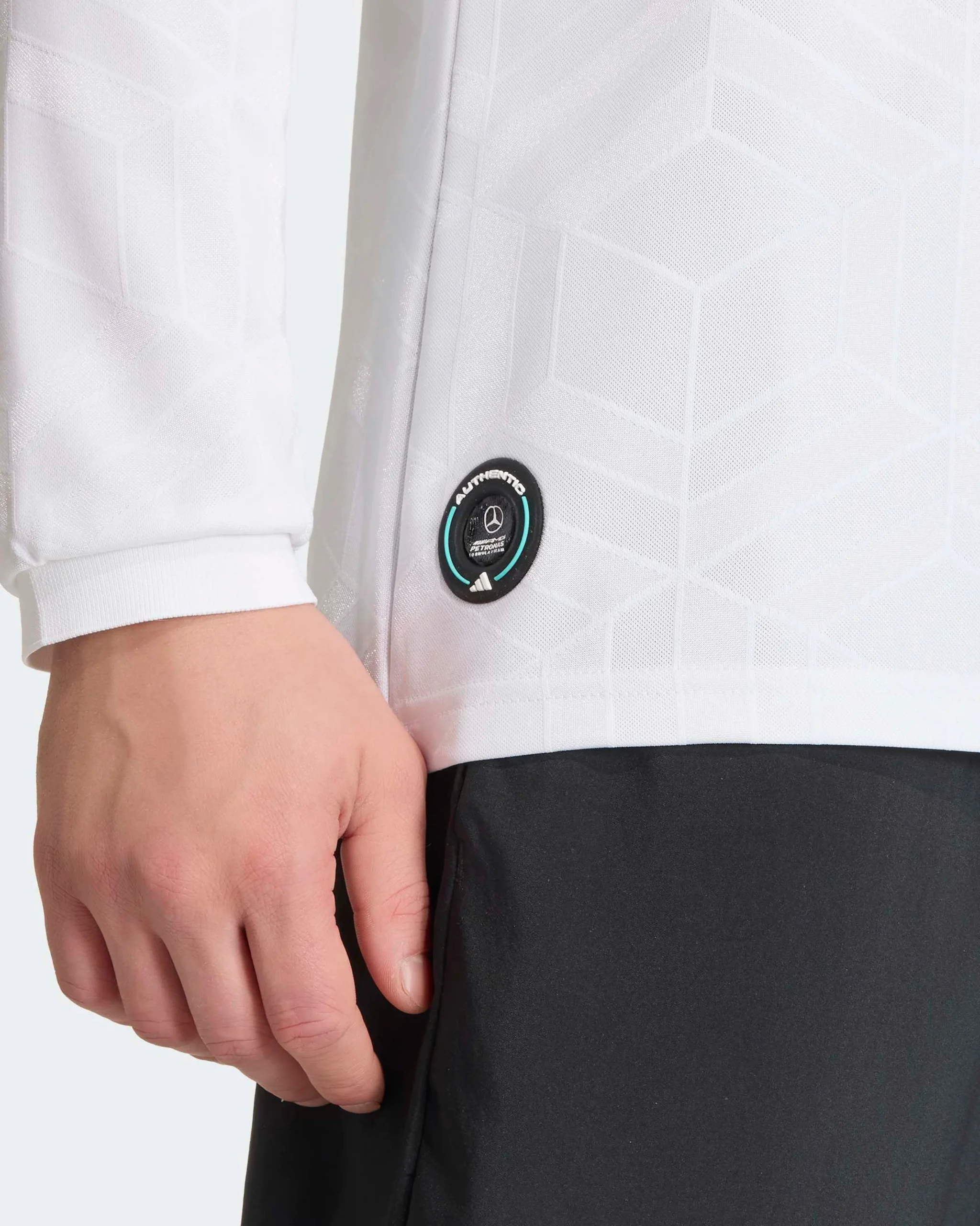 - Playera Mercedes AMG F1 2026 Manga Larga Blanca Piloto con licencia oficial